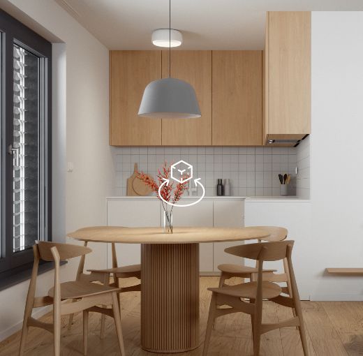 Virtualni ogled stanovanj je zgolj ilustrativne narave. Enote so na voljo neopremljene. Notranja oprema in dekor ni predmet prodaje ali ponudbe prodajalca. Prikazana vgrajena oprema in prikazani materiali lahko odstopajo od dejanskih.